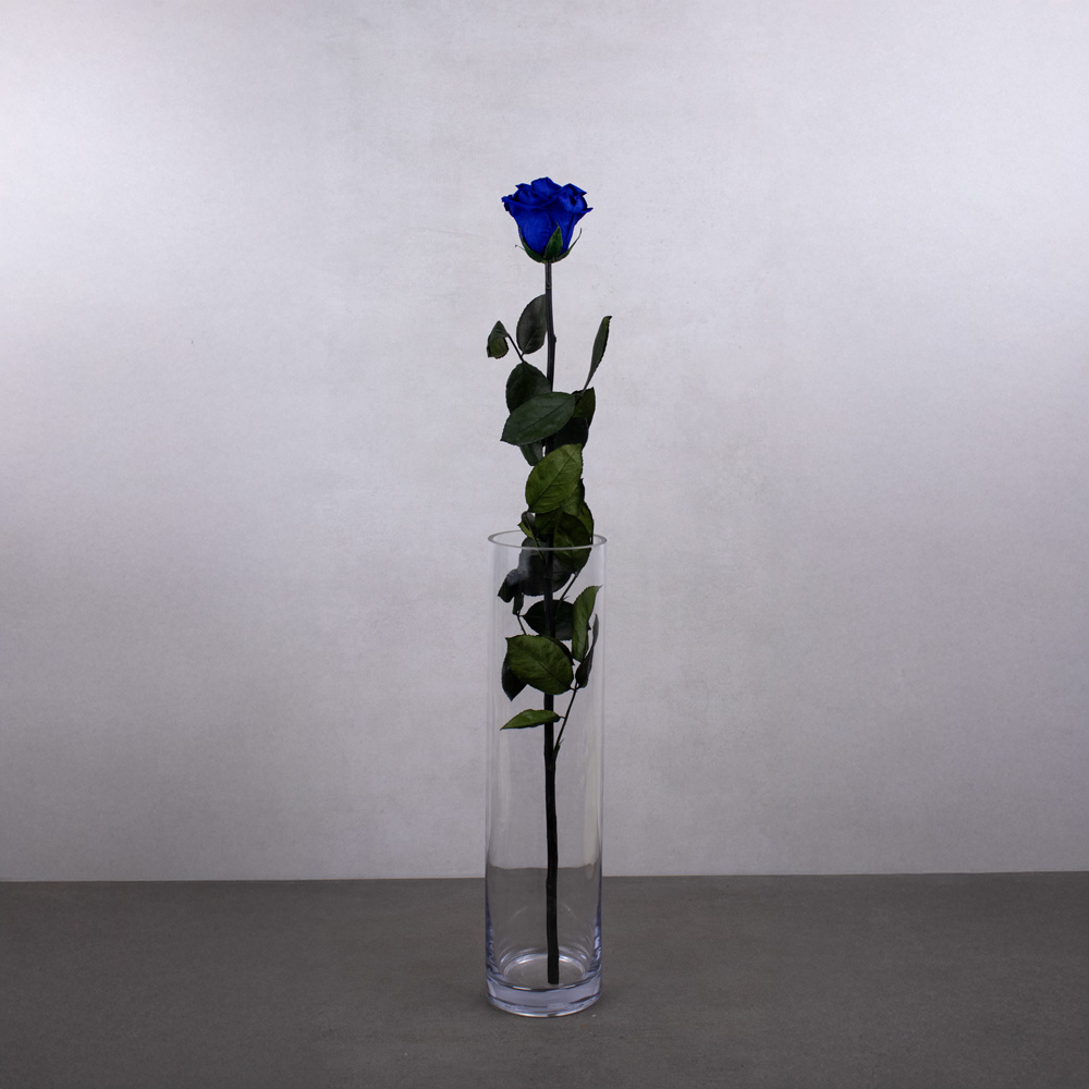 651-538 PRESERVED ROSE ON STEM, DARK BLUE (BLU-03), L: 27", BOX(1)