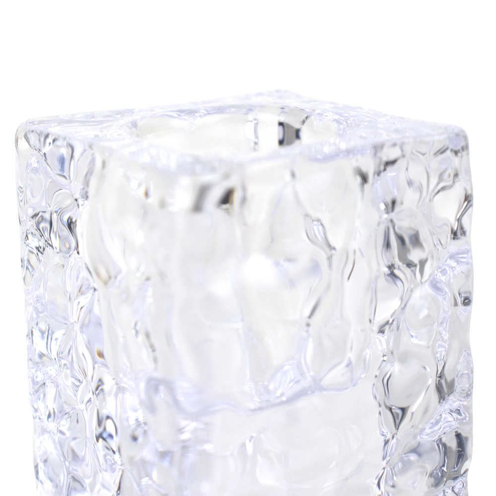 752-004 SQUARE ICE GLASS CANDLE HOLDER, CLEAR, 1½“ x 2½”, BOX (12)