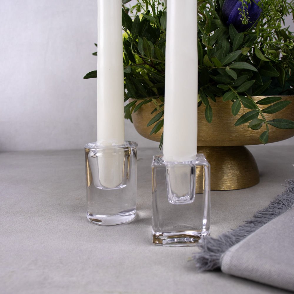 752-009 SQUARE GLASS CANDLE HOLDER, CLEAR, 1½“ x 2½”, BOX(12)