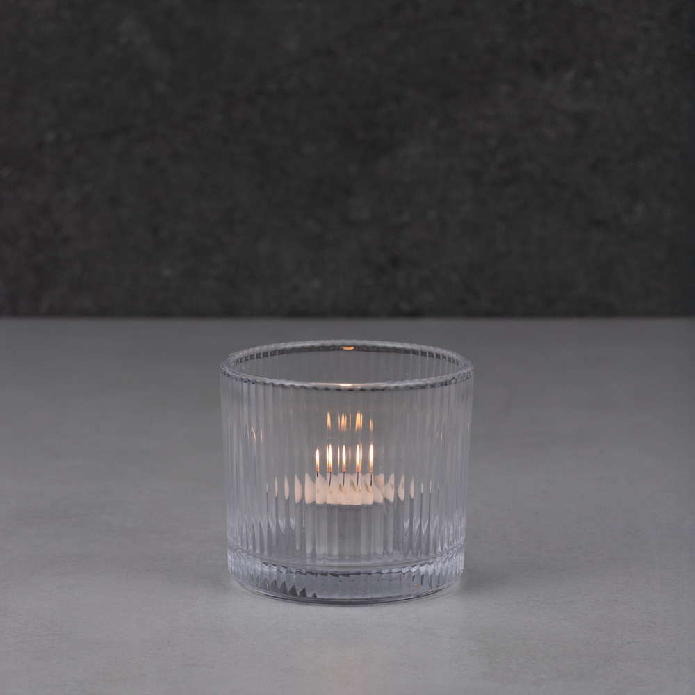 753-030 GLASS CANDLE HOLDER(TEA LIGHT), CLEAR, Ø3“ x 2¾”, BOX(6)