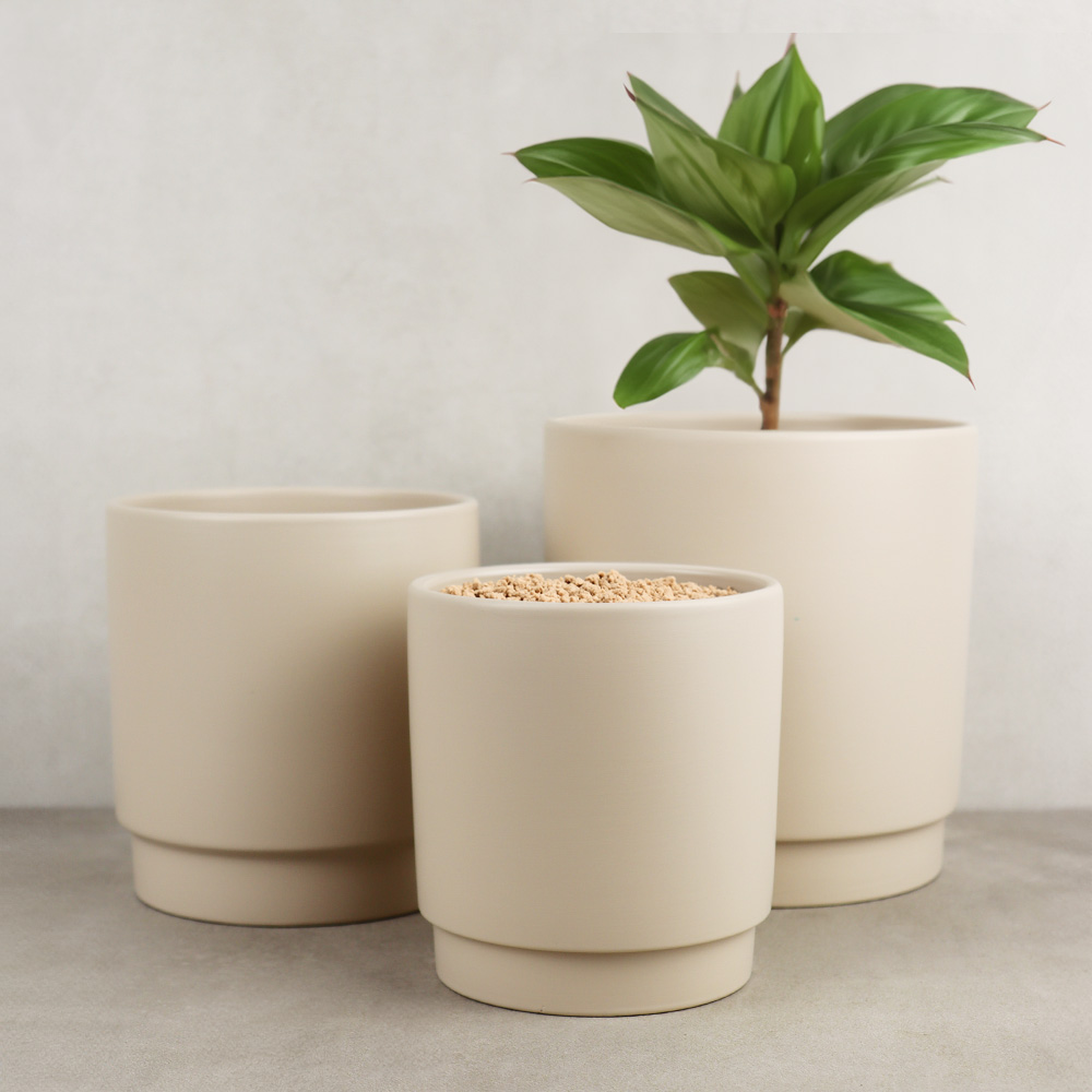 756-405 TERRACOTTA POT COVER, MATTE BEIGE, Ø4¾" x 5¼", BOX(6)