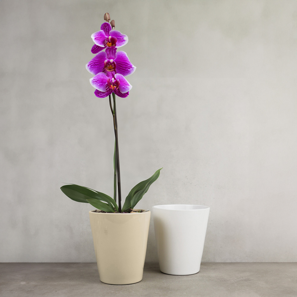 756-480 TERRACOTTA ORCHID POT COVER, WHITE, Ø4¾" x 5¾", BOX(6)