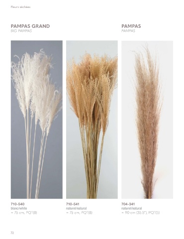 Fleurs séchées PAMPAS GRAND PAMPAS BIG PAMPAS PAMPAS 710-540 710-541 704-341 blanc/white naturel/natural naturel/natural ≈ 75 cm, PQT(8) ≈ 75 cm, PQT(8) ≈ 90 cm (35.5”), PQT(5) 72