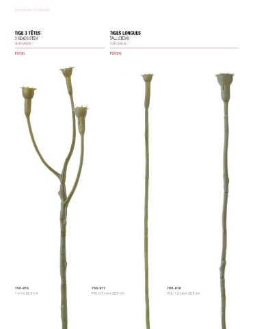 préservés et séchés TIGE 3 TÊTES TIGES LONGUES 3 HEADS STEM TALL STEMS VERT/GREEN VERT/GREEN PQT(6) PQT(24) 700-816 700-817 700-818 1 cm x 32.5 cm P/S: 0.7 cm x 32.5 cm G/L: 1.2 cm x 32.5 cm 22