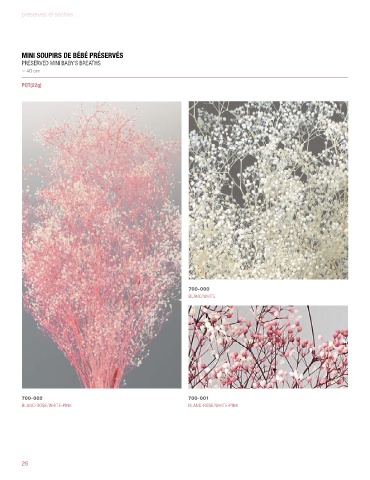 préservés et séchés MINI SOUPIRS DE BÉBÉ PRÉSERVÉS PRESERVED MINI BABY’S BREATHS ≈ 40 cm PQT(22g) 700-000 BLANC/WHITE 700-002 700-001 BLANC-ROSE/WHITE-PINK BLANC-ROSE/WHITE-PINK 26