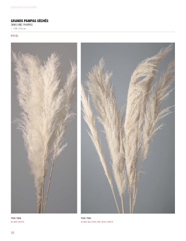 préservés et séchés GRANDS PAMPAS SÉCHÉS DRIED BIG PAMPAS ≈ 100-110 cm PQT(5) 700-785 700-790 BLANC/WHITE BLANC NATUREL/NATURAL WHITE 28