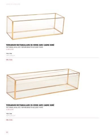 TERRARIUM RECTANGULAIRE EN VERRE AVEC CADRE DORÉ