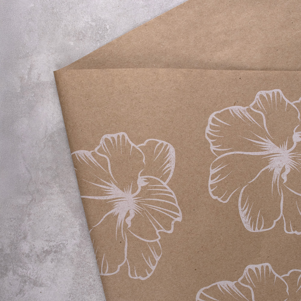 605-194 MANCHON KRAFT P/PLANTES, NATUREL A/FLEUR BLANCHE, 7"x23"x30", PQT(10)