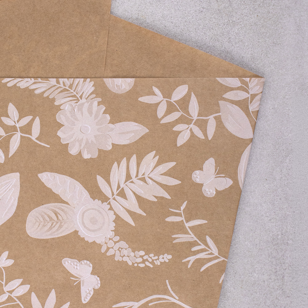 605-223 MANCHON KRAFT 6 ROSES "PARFUM BOISÉ", NAT/BLANC, 5"X14"X30", PQT(10)