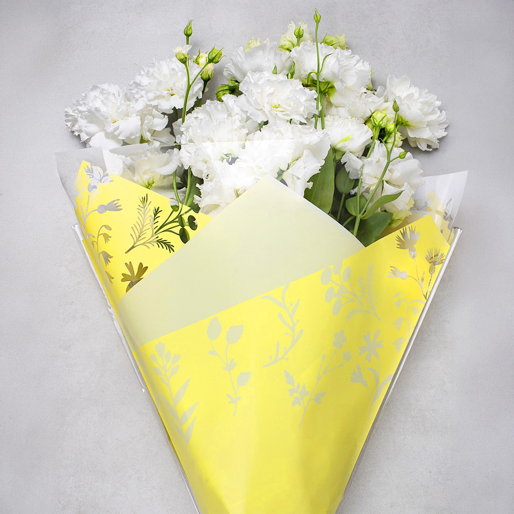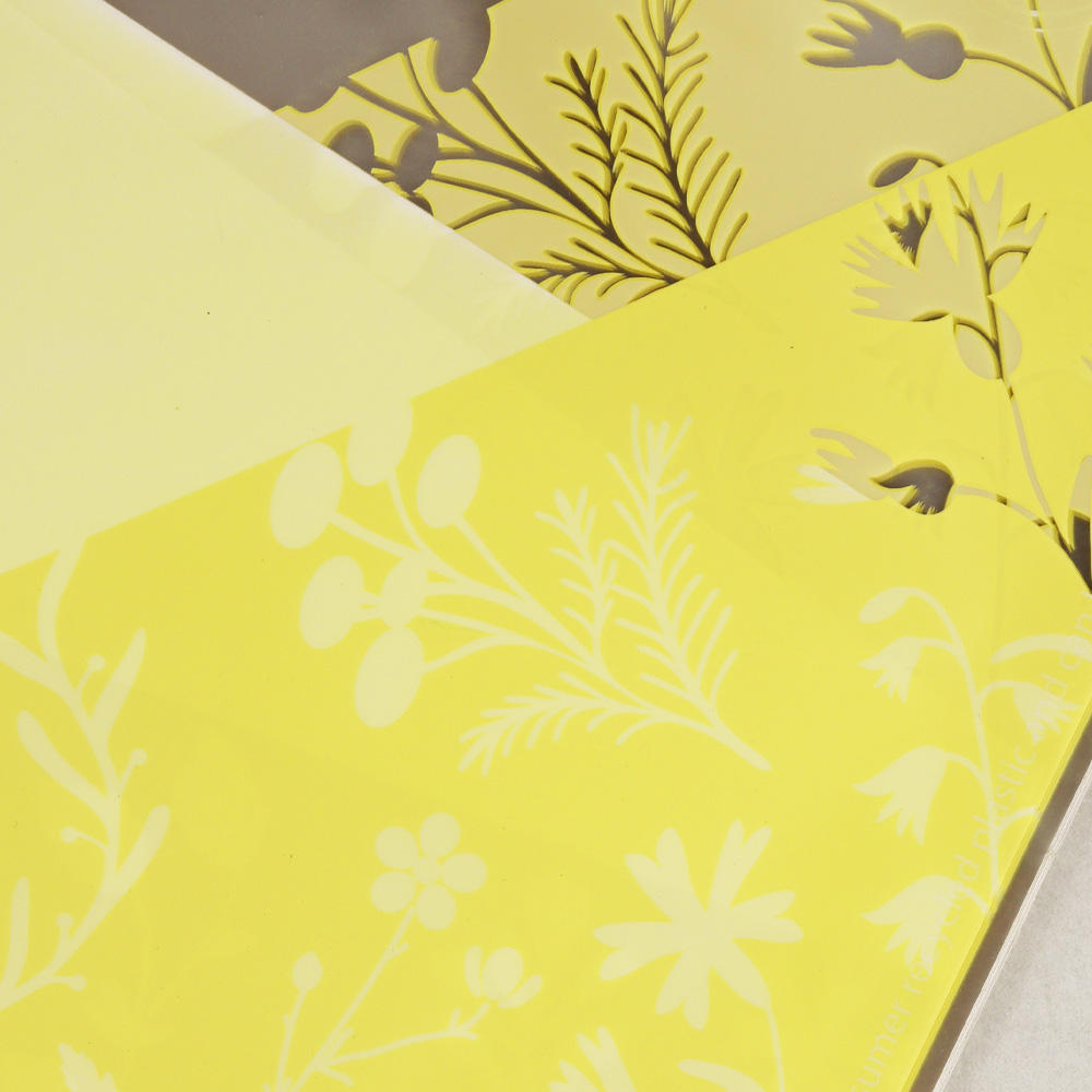 605-762 MANCHON "BOTANICAL", JAUNE, 17¼"X4"X19½", PQT(50)