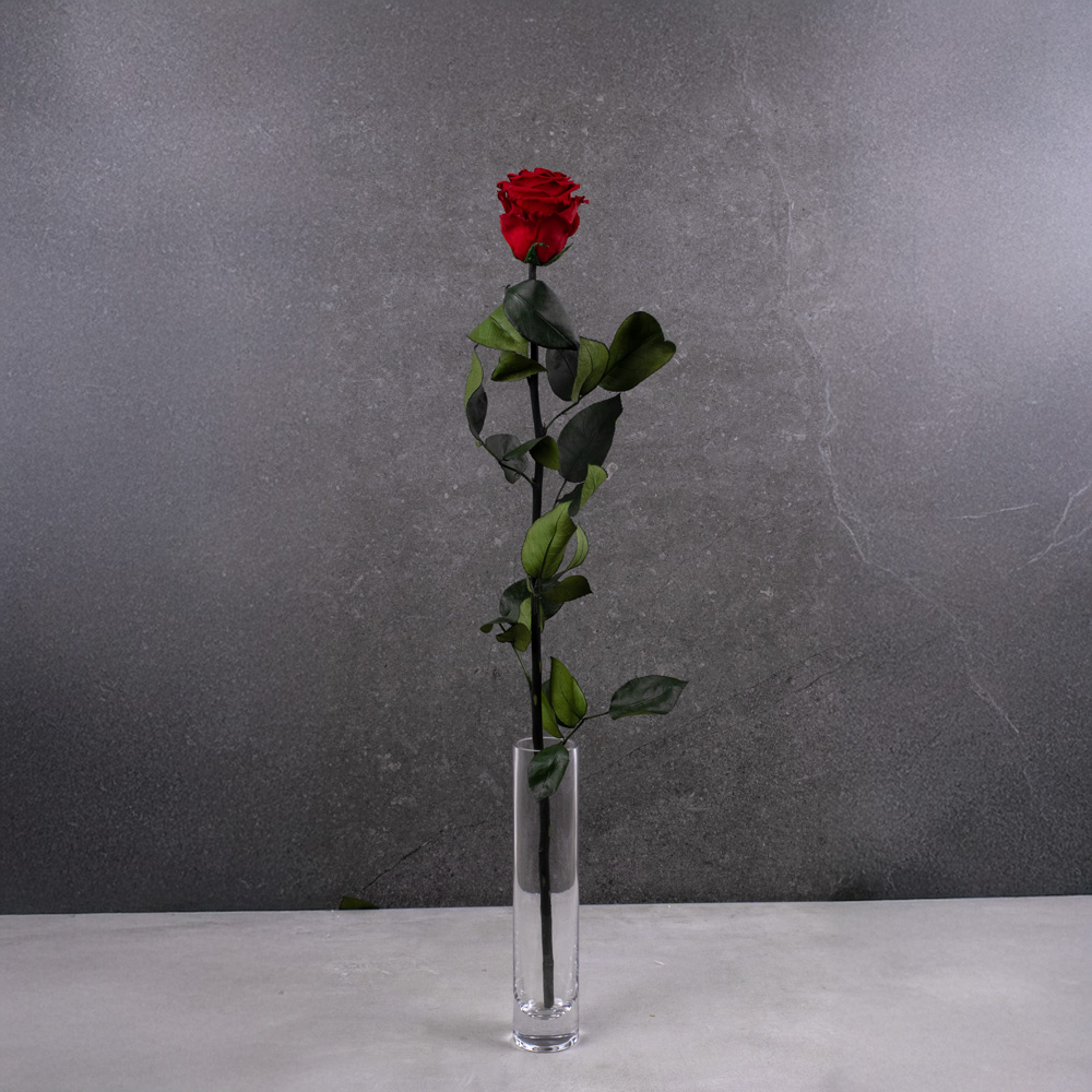 651-530 ROSE PRÉSERVÉE SUR TIGE, ROUGE CLAIR (RED-02), L: 27", BTE(1)