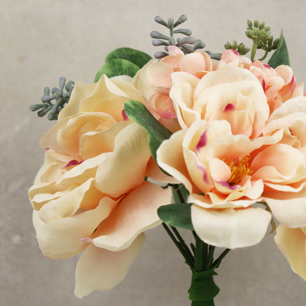 653-914 BOUQUET ROSES ET HYDRANGÉES, ROSE PÂLE, 12"##LIQUI##