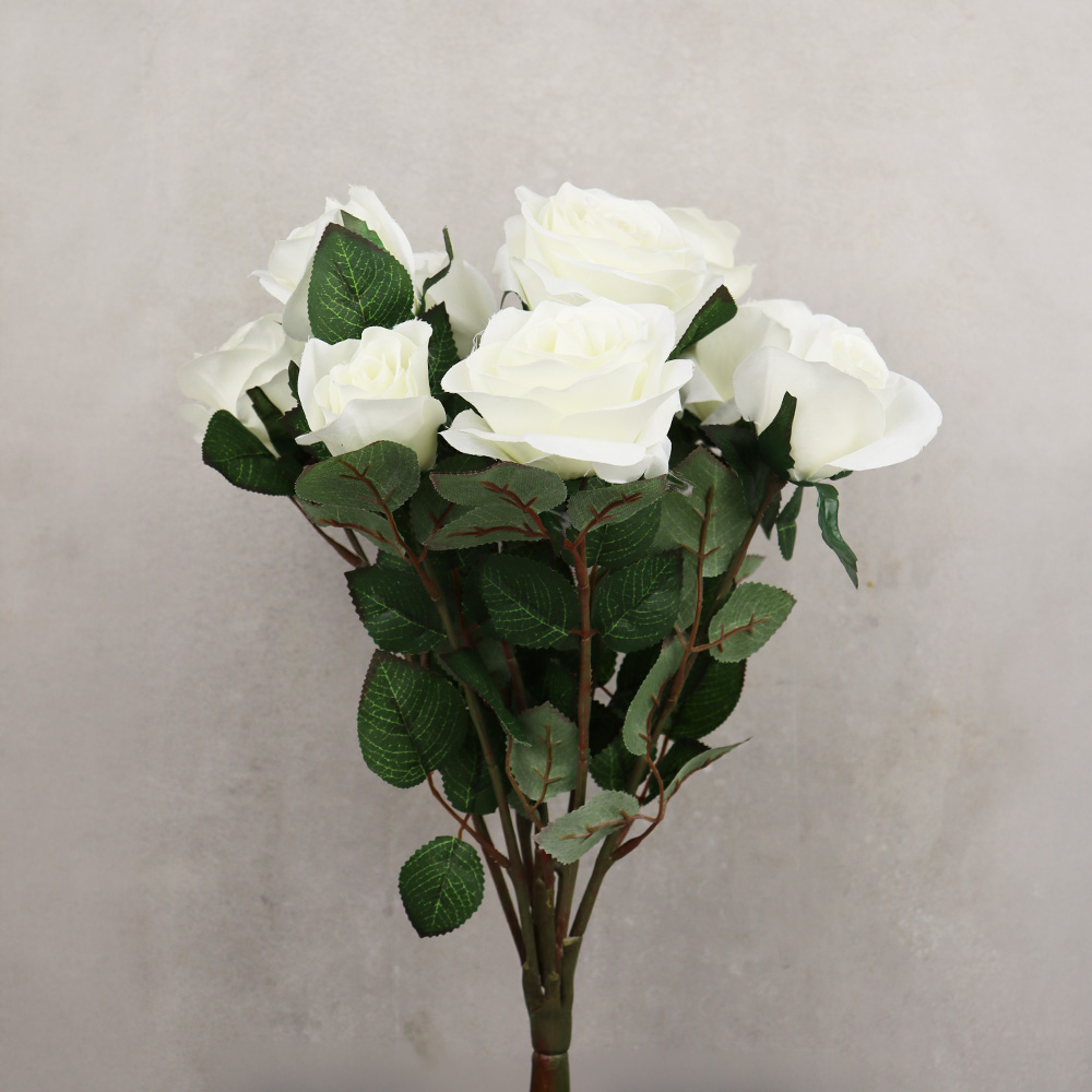 655-125 BOUQUET DE ROSES "ELIZABETH" (9 FLEURS), BLANC, 15"