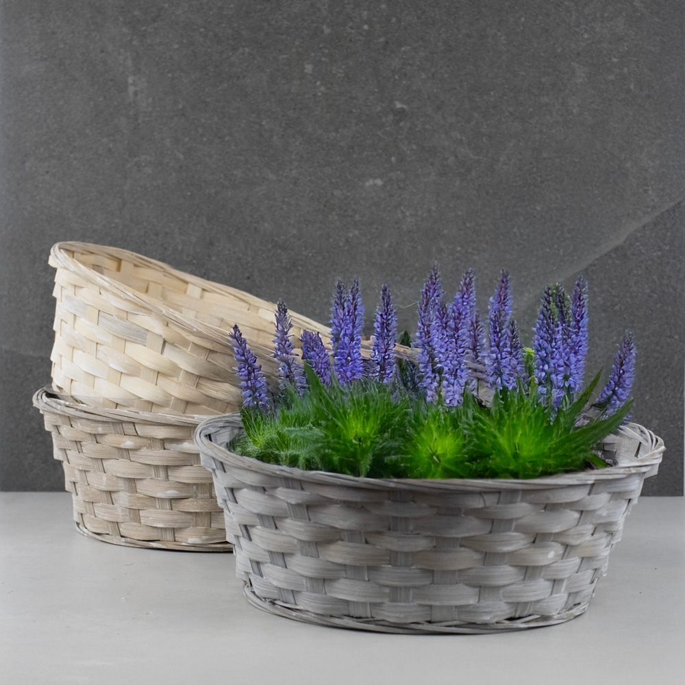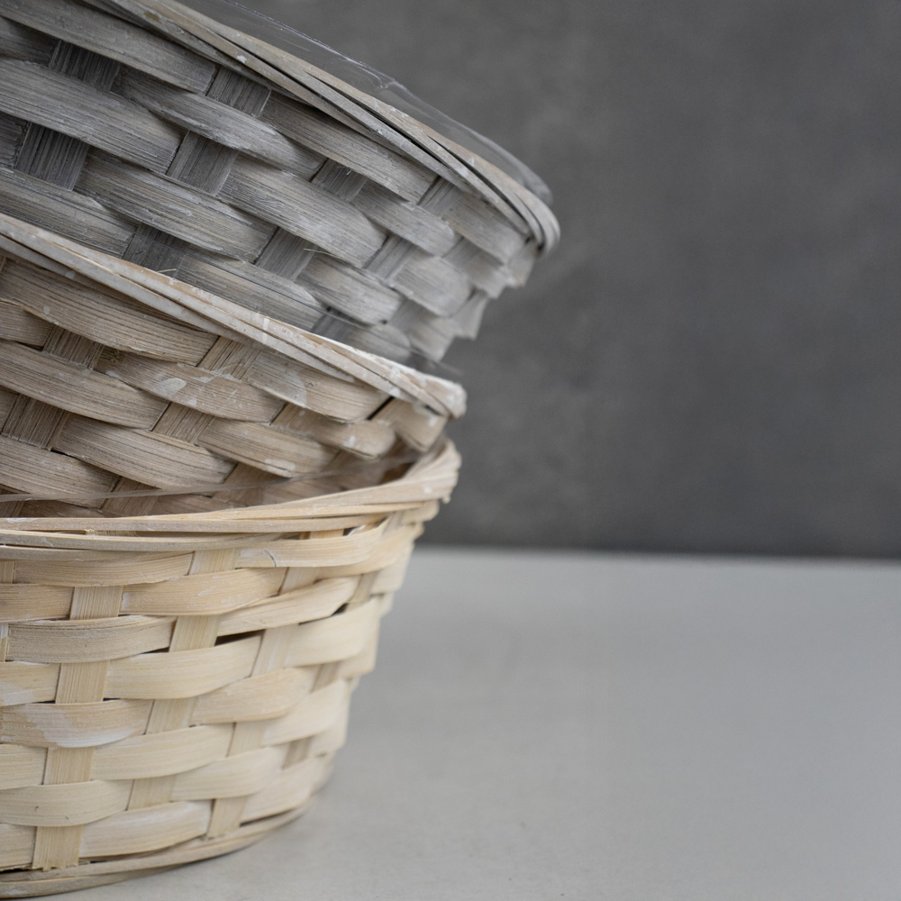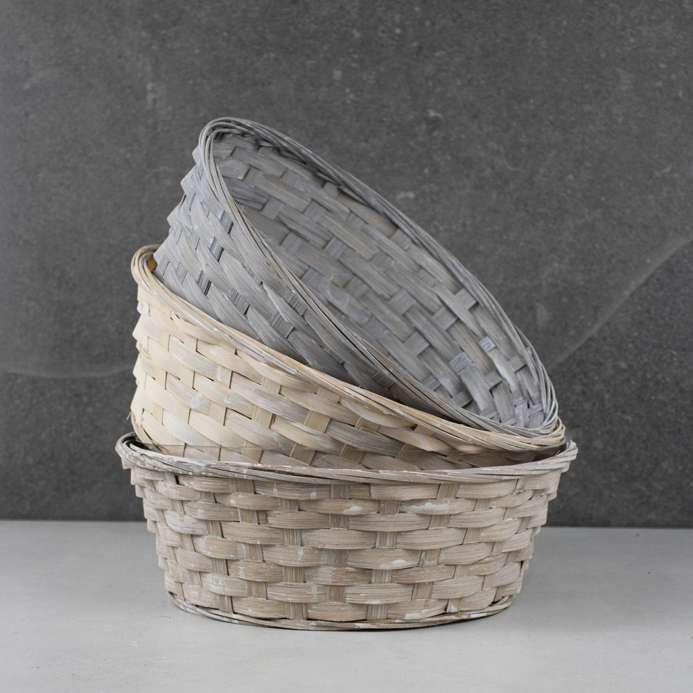 803-550 PANIER EN ROTIN, BLANC-BLEU-GRIS DÉLAVÉS, Ø 11" X Ø 8½" X 4", SET(3)