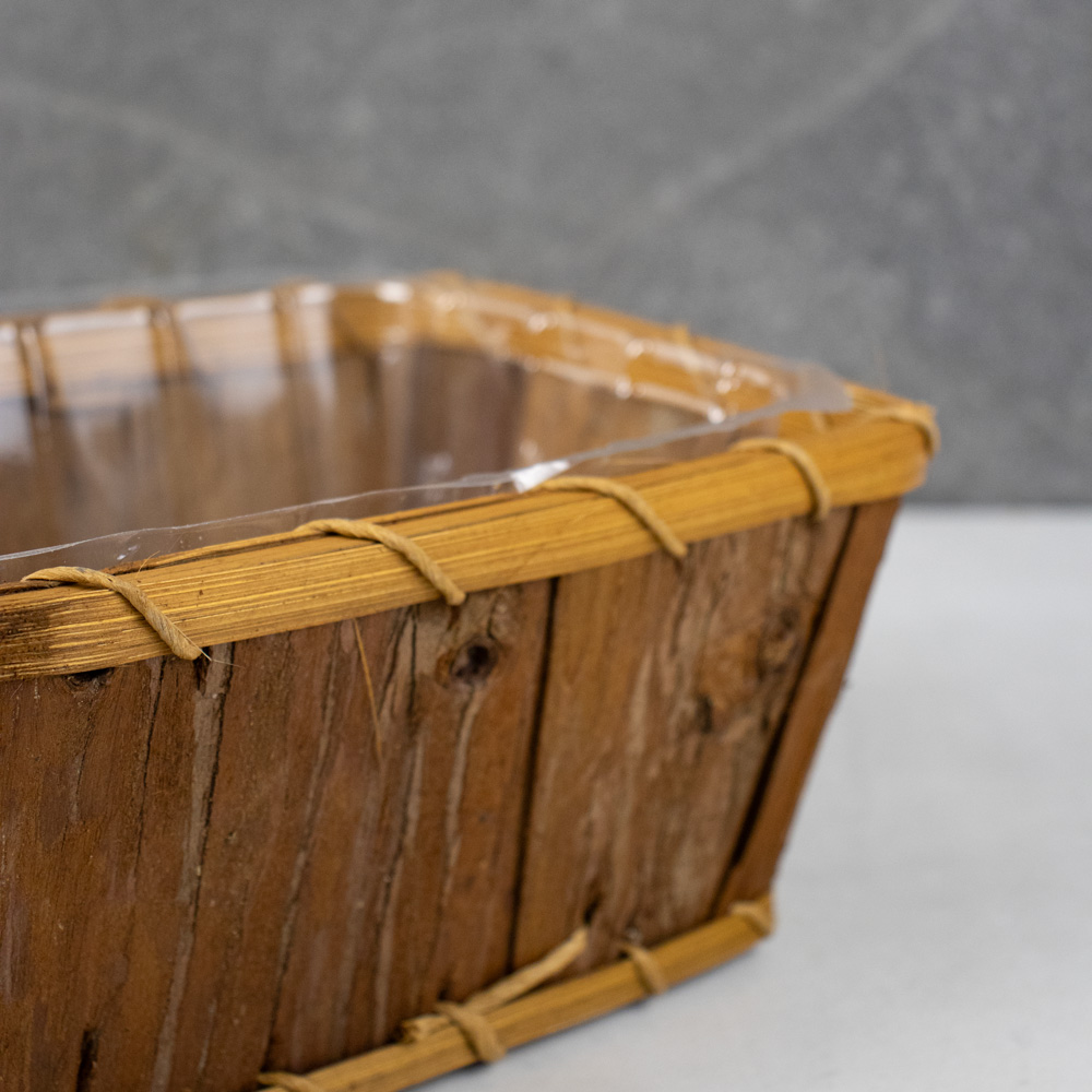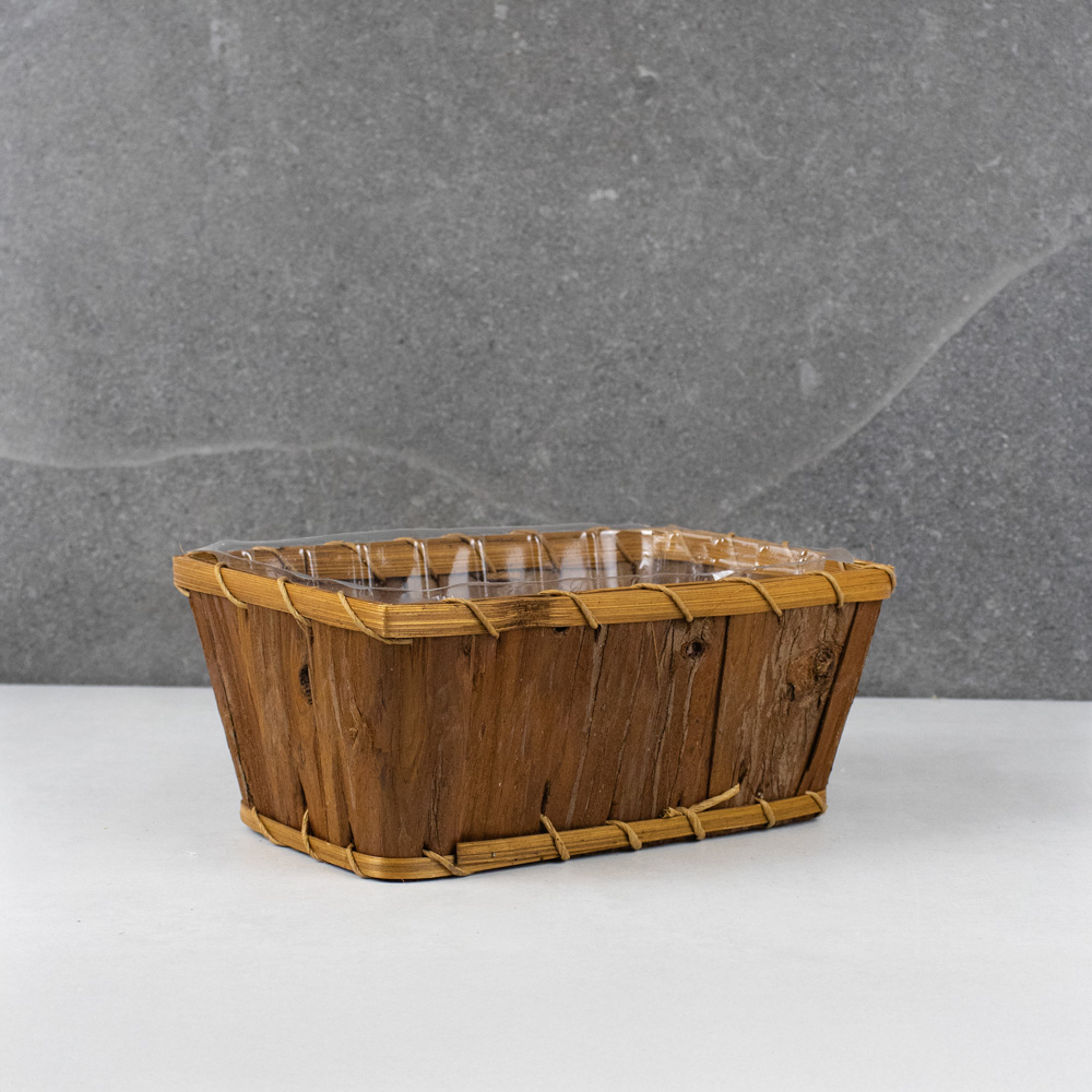 803-565 PANIER DE COPEAU DE BOIS BRUN RECTANGLE AVEC DOUBLURE (10"X7½")