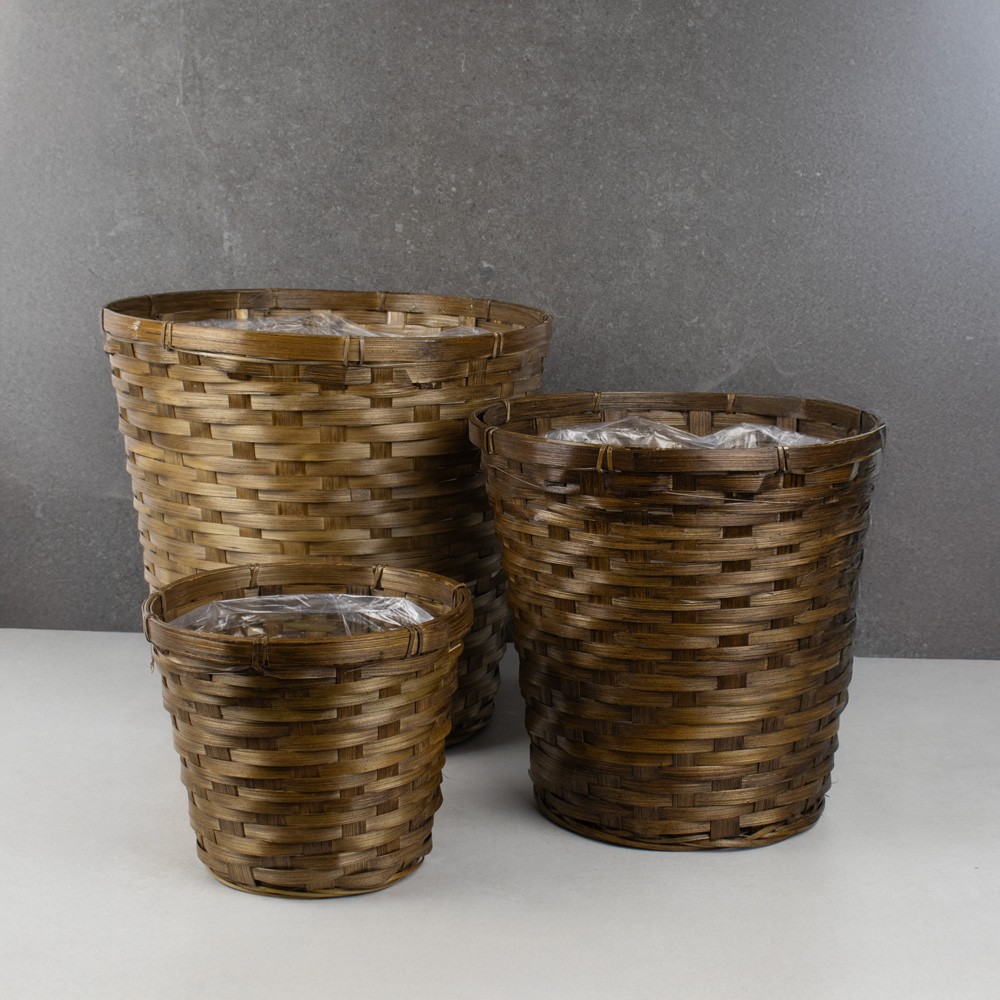 803-568 CACHE POT TRESSÉ A/DOUBLURE, BRUN FONCÉ, 12"