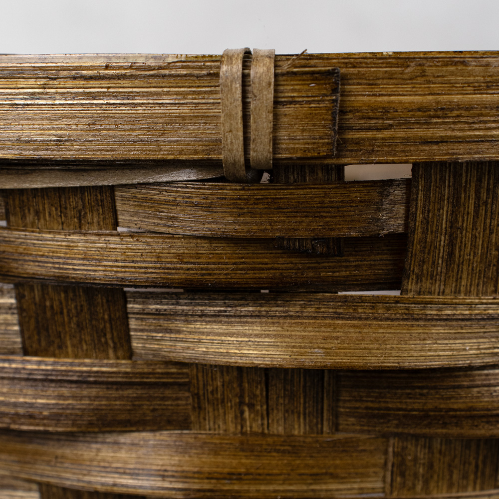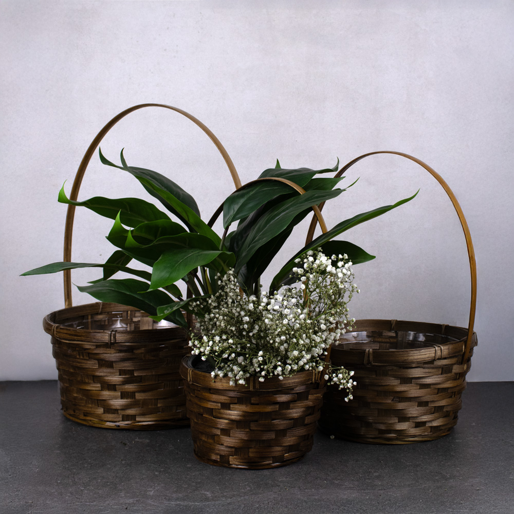 803-583 PANIER ROND EN BAMBOU A/ANSE ET DOUBLURE, BRUN FONCÉ, 6"/8"/10",SET(3)