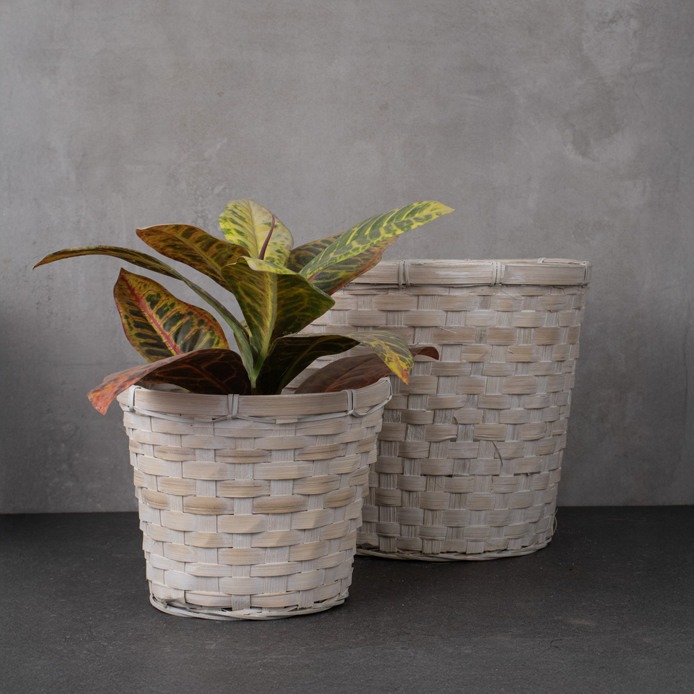 803-587 CACHE POT ROND BAMBOU BLANC DÉLAVÉ ET DOUBLURE 6"(15CM)