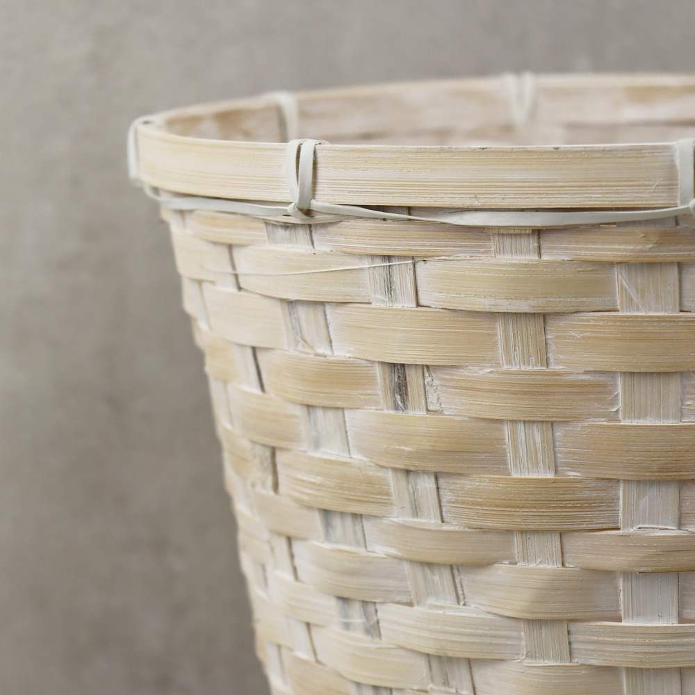 803-588 CACHE POT ROND BAMBOU BLANC DÉLAVÉ ET DOUBLURE 8"(20CM)