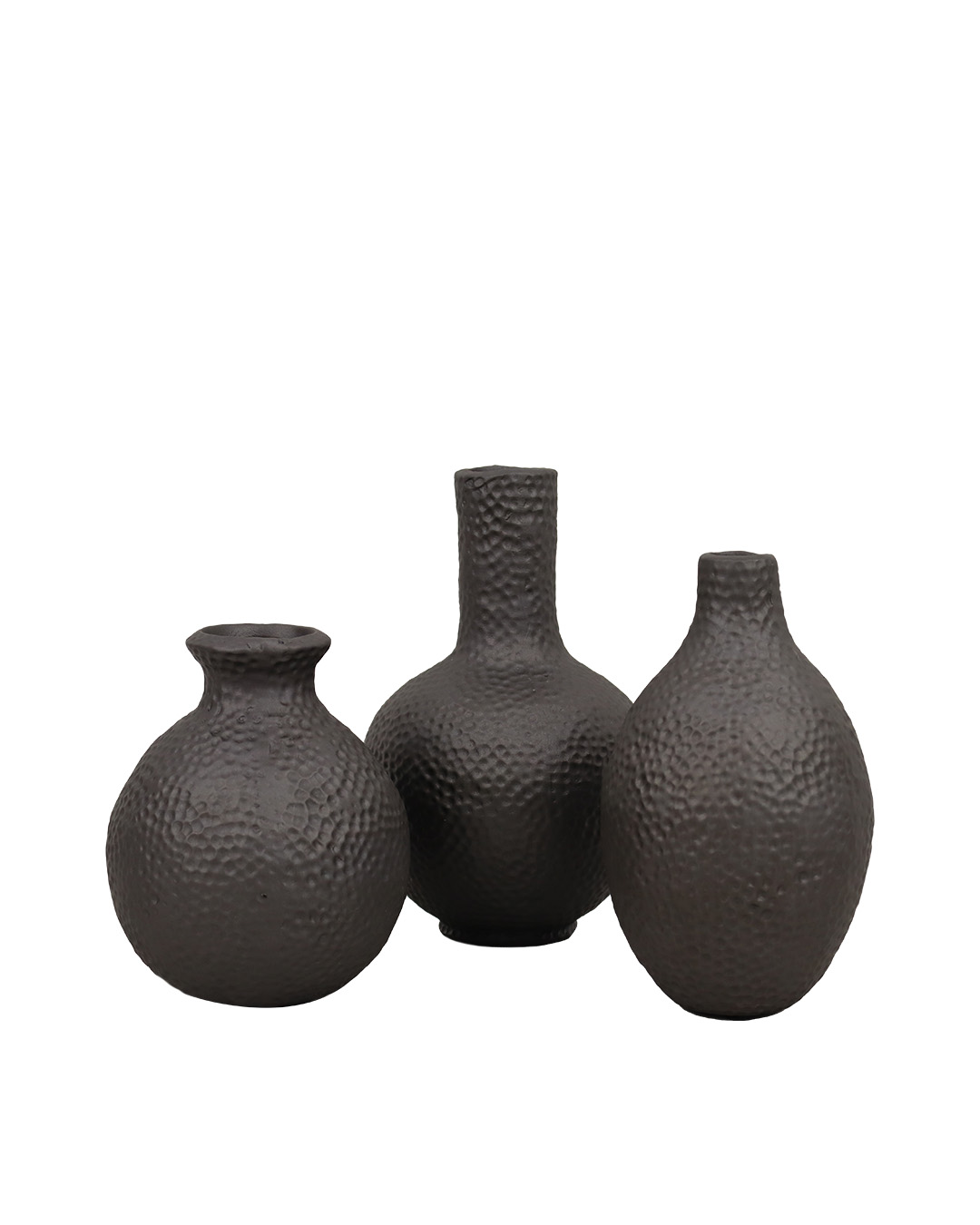 811-016 "BUD VASES" MARTELÉ, NOIR, approx. 7¼"x5", BTE(4SETS)