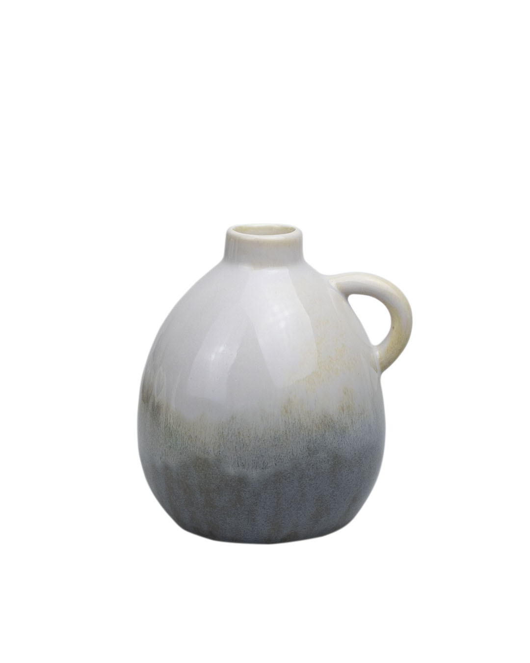 811-049 VASE EN CÉRAMIQUE, BEIGE/BLEU, 6½"x6½", BTE(4)