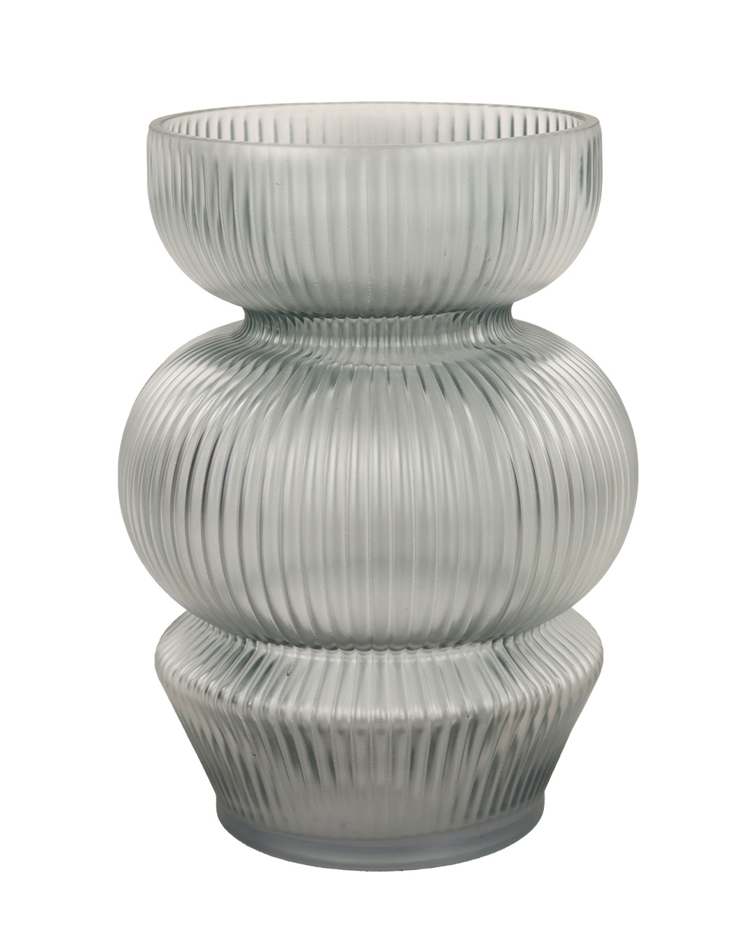811-211 VASE EN VERRE, BLEU ARGENTÉ, approx. 7"x10", BTE(3)