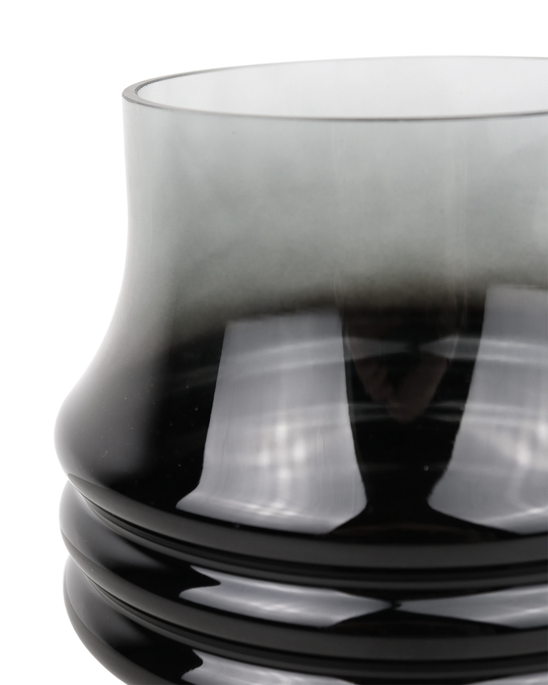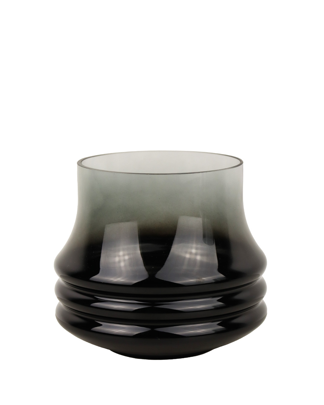 811-214 VASE EN VERRE, NOIR DÉGRADÉ, approx. 7"x7", BTE(4)