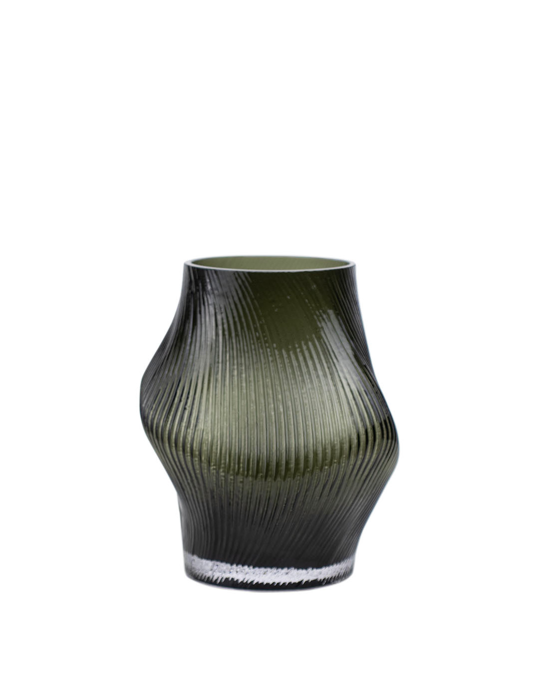 811-216 VASE EN VERRE CANNELÉ, VERT, approx. 8"X8", BTE(4)