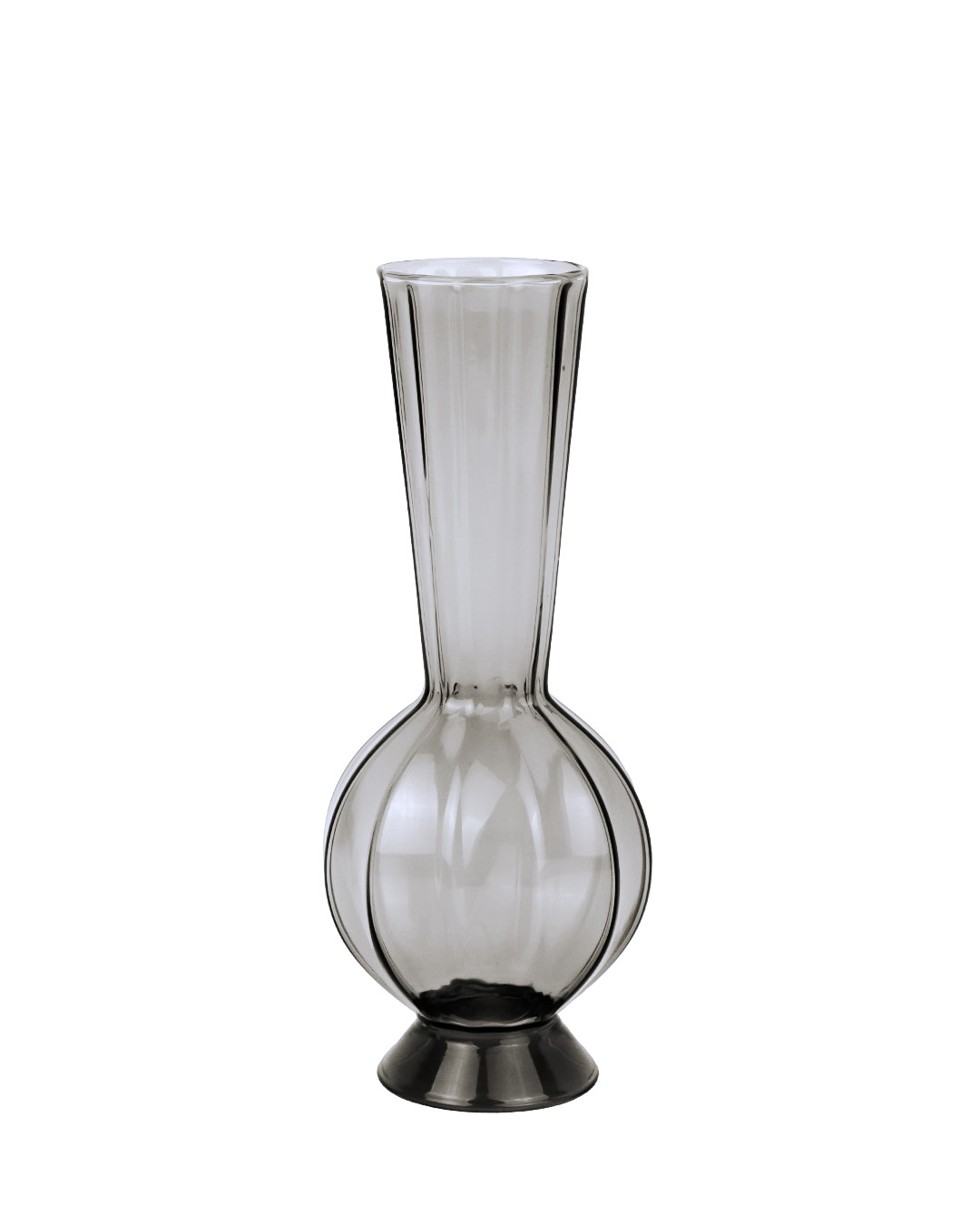 811-218 "BUD VASE" EN VERRE, CHARBON, approx. 3½"x8", BTE(6)