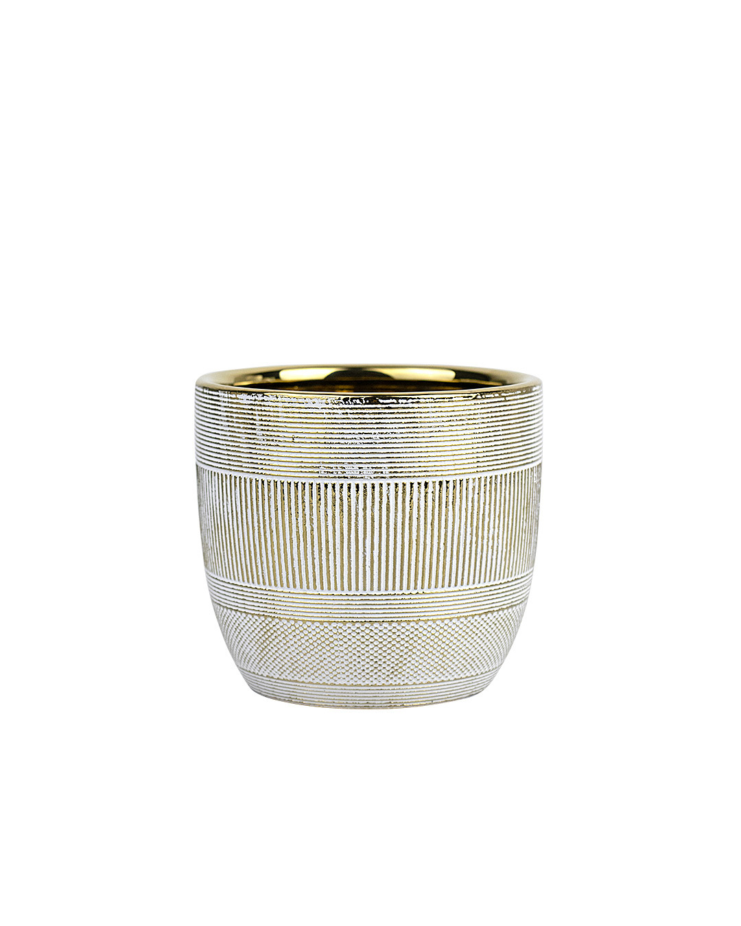 812-301 CACHE-POT EN CÉRAMIQUE, BEIGE/OR, 4"x3½", BTE(8)