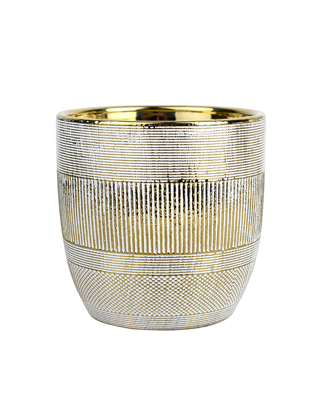 812-302 CACHE-POT EN CÉRAMIQUE, BEIGE/OR, 5"x5", BTE(6)